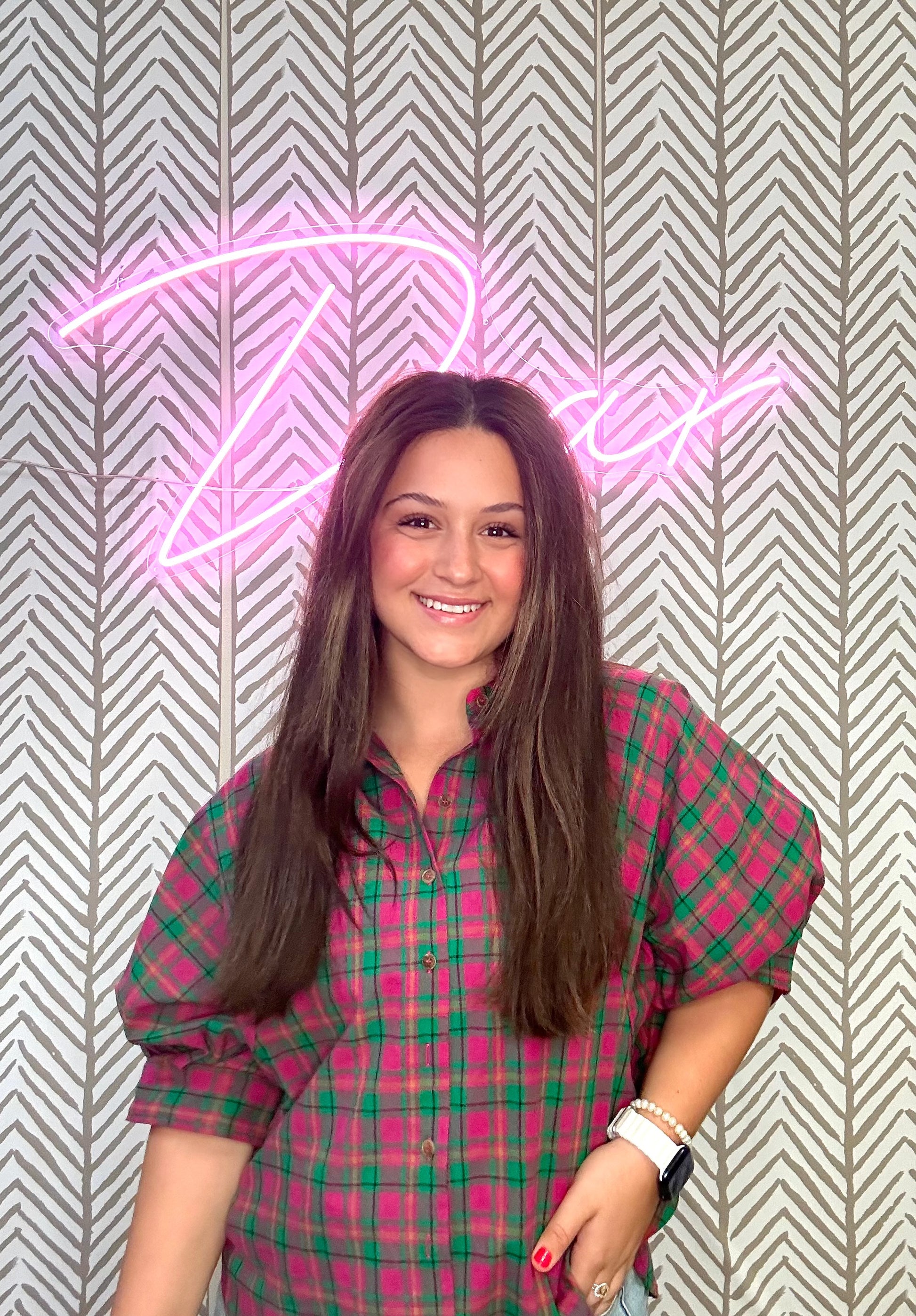 The Call Me Later top is an oversized plaid button down half sleeve collard top featuring button closure at cuff.