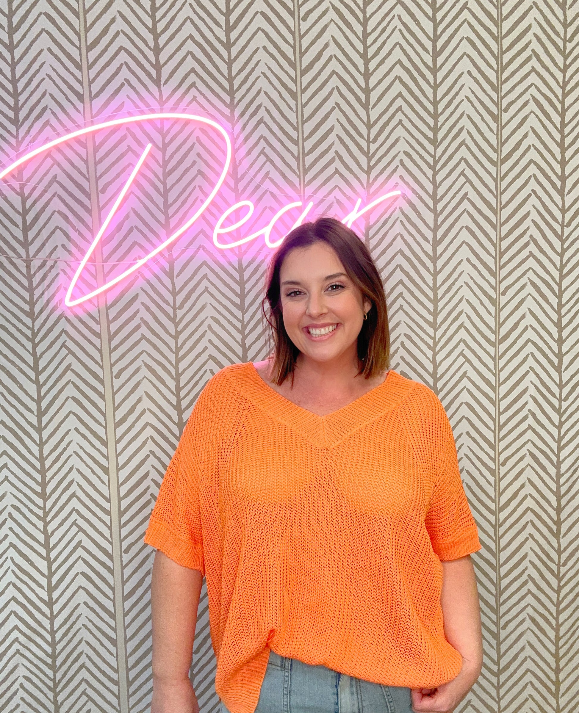 The Sweet Day Top is a short dolman sleeve lightweight v-neck sweater top.